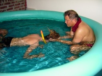 Wenn es richtig gemacht wird, d.h. wenn Atemrhythmus, Eintauchgeschwindigkeit und entsprechende Gedankensysteme im Einklang sind, entwickelt der Körper soviel Wärme, daß keinerlei Unannehmlichkeit empfunden wird. Diese Art des Rebirthing ist nur für »Profis«, die in vorausgegangenen Einzel- und Warmwasser-Rebirthings durch entscheidende Grenzen in ihrem persönlichen Prozeß gegangen sind.